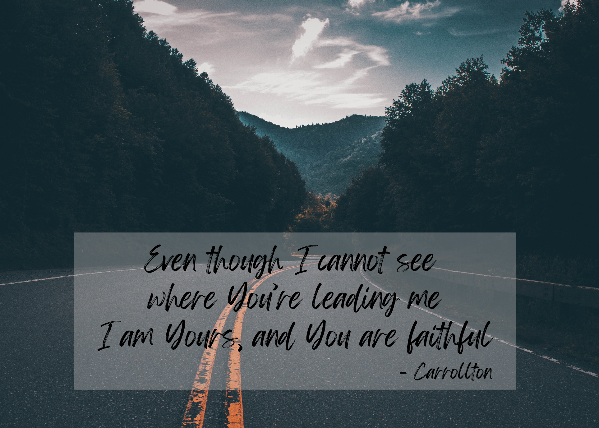 Even though I cannot see where you’re leading me // I am Yours, and You are faithful.